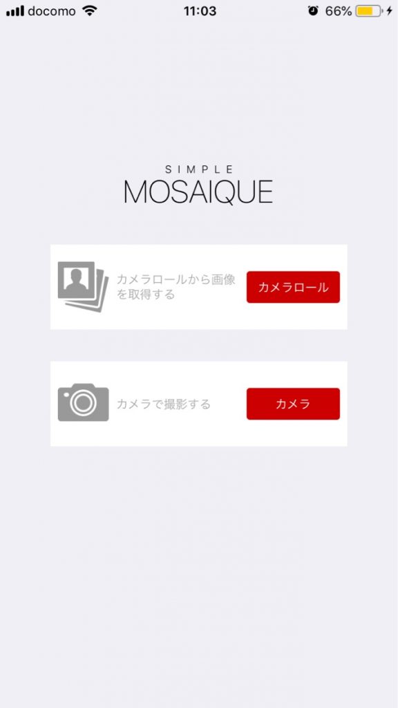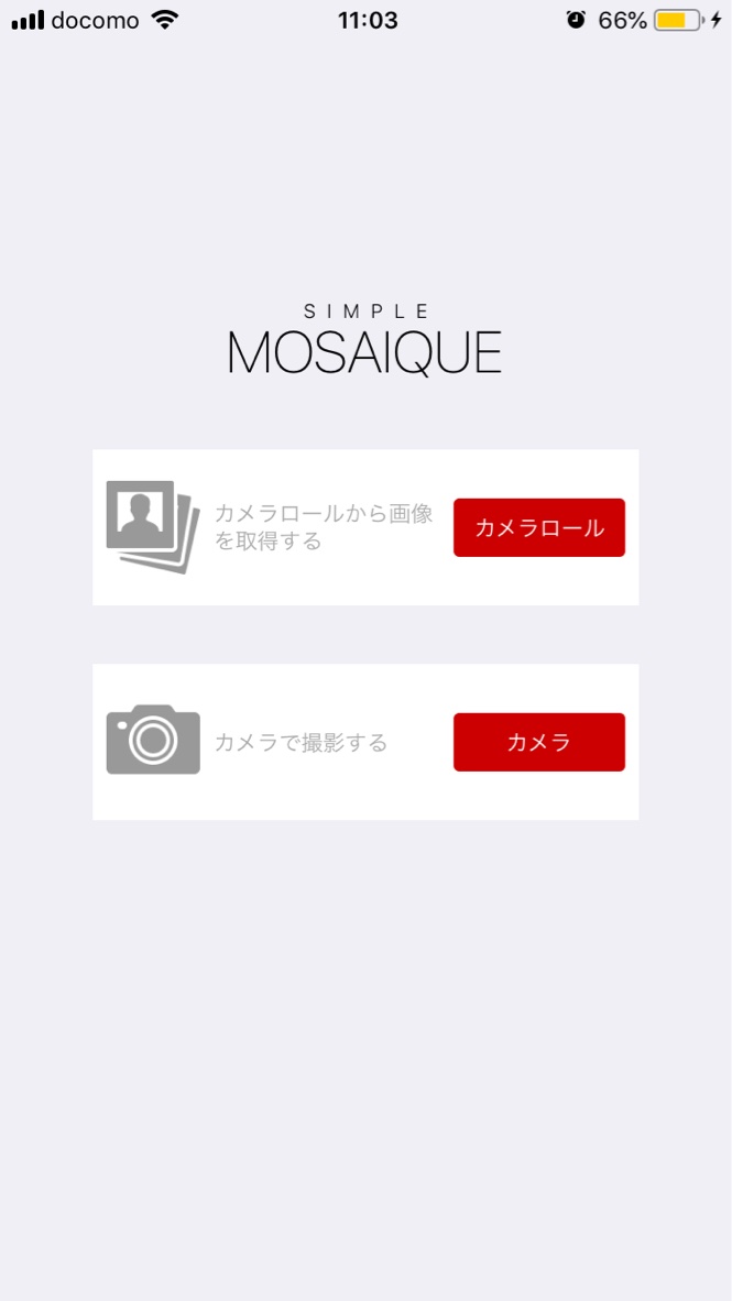 - アプリを立ち上げた画面。写真を選択。