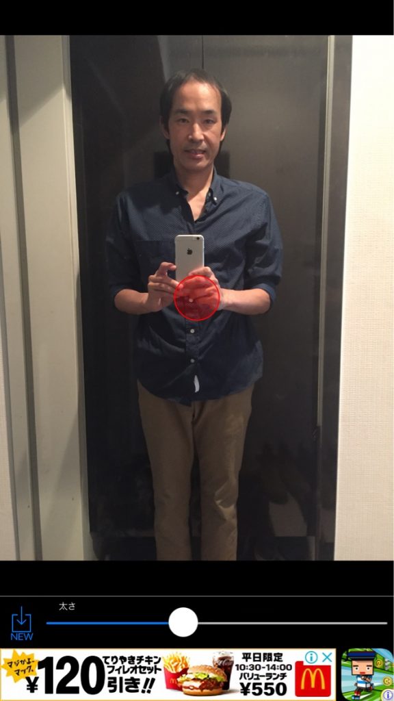 - 写真を選択後下のバーでぼかす太さを○を見ながら調整する。