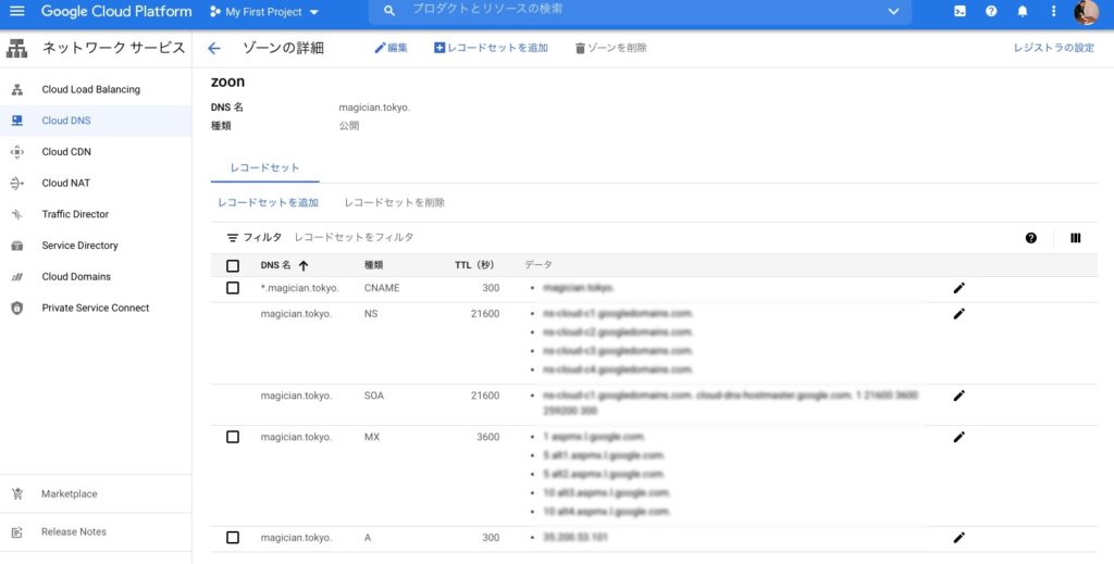 GoogleのGCPのゾーンの詳細でさくらのMXレコードに変更
