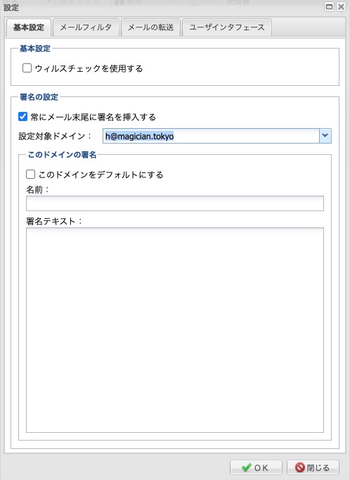 さくらのサーバコントロールパネルからWebメールをクリックして設定から対象のドメインを選択して「このドメインをデフォルトにする」をチェックしてOKをクリックする。