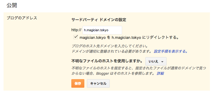 「magician.tokyo を magician.tokyo にリダイレクトする。」にチェックを入れて「保存」ボタンをクリック。