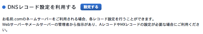 「DNSレコード設定を利用する」の「設定する」ボタンをクリック。