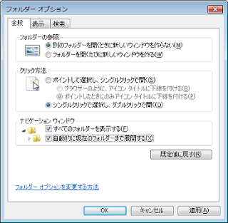 vistaまではエクスプローラのフォルダーツリーと右側の表示が連動していたのだけど、7からは連動しなくなってしまった。