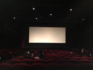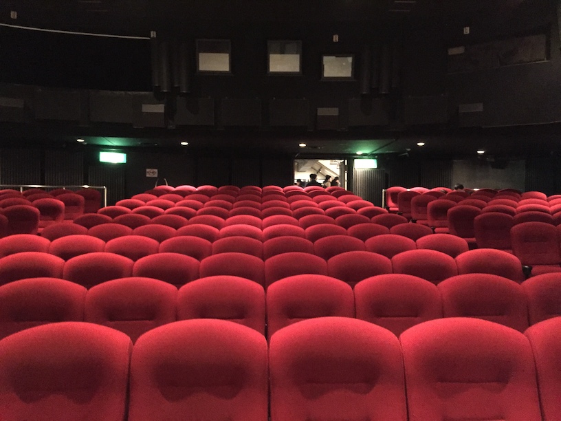 ここは舞台挨拶もできる前に少し空間がある劇場なので1番前にしても近すぎる感じはしません。ただ下からの角度に成るのでその角度に合わせて座ると首とお尻に少し負担があるかもしれない。今回は長いから流石にお尻が痛くなった。