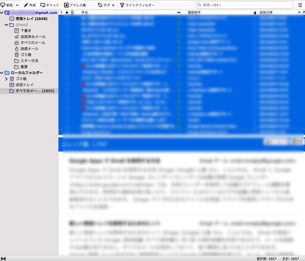 すべてのメールを選択して右上を全て選択する(右上のどこかを選択してからキーボードのCommand+A(Macの場合))。