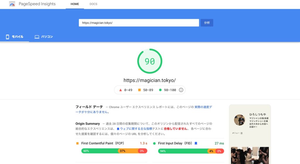 しかしなんとか対策できないかと引き続き探していたところネット上に解決策を見つけ実施してみたところ見事PageSpeed Insightsが90に!